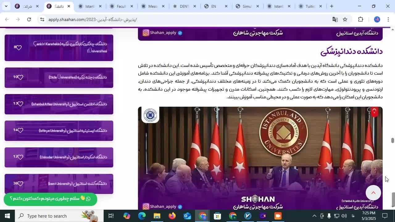 برای پذیرش 2025 دندانپزشکی آیدین استانبول به لینک زیر مراجعه کنید.