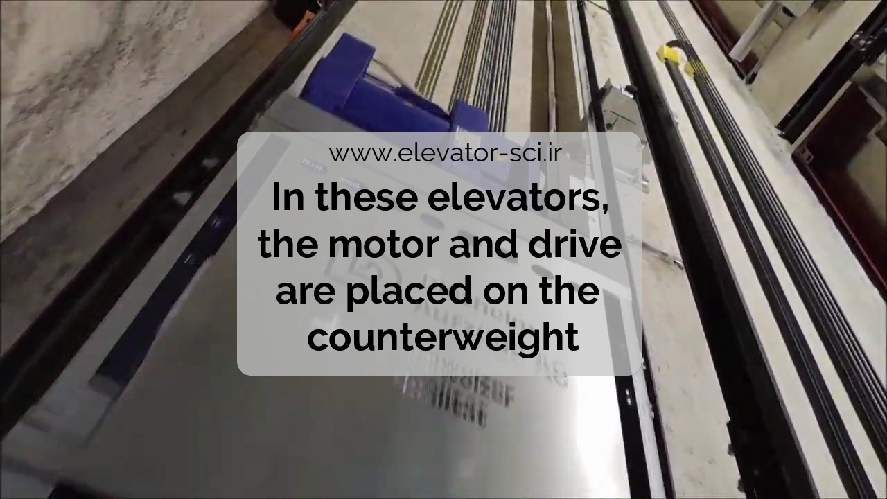 آسانسور بدون موتورخانه بسیار ویژه که موتور و درایو برروی کادر وزنه نصب شده است.