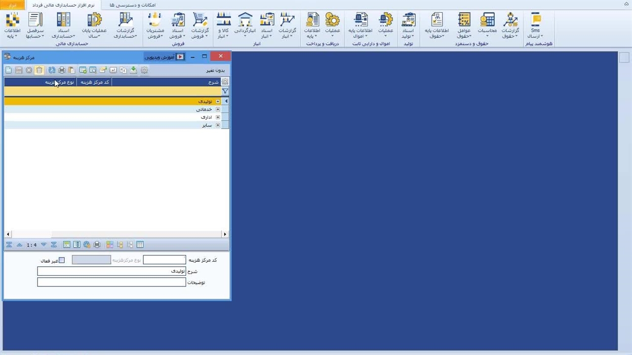 آموزش فرم مرکز هزینه ماژول مالی نرم افزار حسابداری فرداد