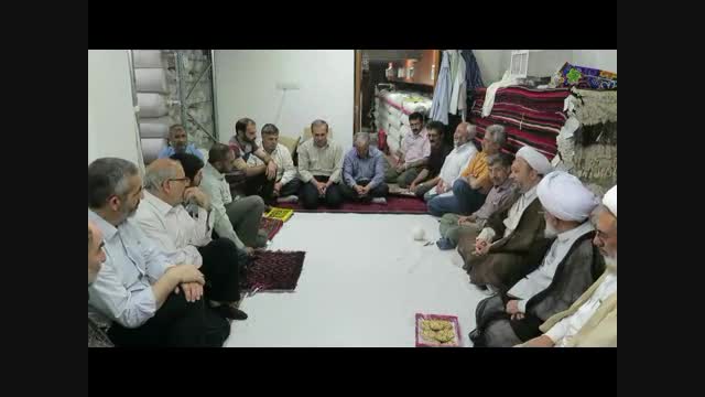 مولودی خوانی پدر شهید آسایش در کارگاه مرمت فرش حرم اباعبدالله