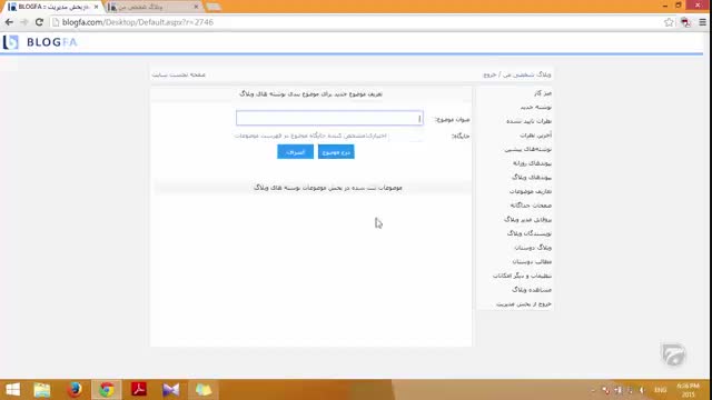 در بلاگفا به مانند هر سرویس وبلاگ دهی دیگر، شما می توانید نوشته های خود را دسته بندی کنید و نوشته های خود را درون آن دسته بندی منتشر کنید. بدین ترتیب پیدا کردن یک نوشته توسط بازدید کنندگان شما بسیار راحت تر خواهد شد. بنابر این در این ویدیو به این بخش از مدیریت وبلاگ بلاگفا اشاره خواهیم کرد.