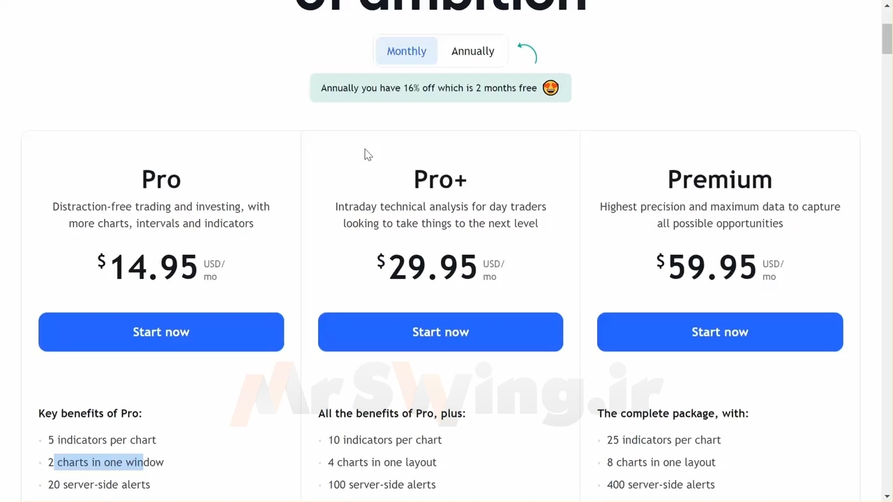 برای دسترسی به امکانات تریدینگ ویو نظیر نشان دادن بیشتر از 3 اندیکاتور در نمودار، شما نیاز به تهیه نسخه ی پرمیوم تردینگ ویو و شارژ ماهانه آن هستید که در حال حاضر نسخه ی پرمیوم تردینگ ویو برای هر ماه مبلغی بین چهارصد هزار تومان تا یک میلیون و ششصد هزار تومان را از شما دریافت می کند (تعرفه خدمات تردینگ ویو). اما با تهیه این محصول شما تنها یکبار با تخفیف لحاظ شده، فقط مبلغ نود و نه هزار تومان را پرداخت خواهید کرد و از کار کردن با بیش از نه اندیکاتور مختلف به صورت همزمان لذت خواهید برد.