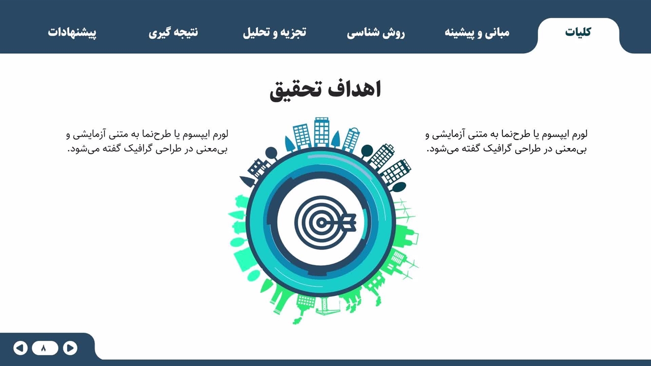 قالب آماده پاورپوینت پایان نامه شهرسازی در 40 اسلاید حرفه ای به سبک منودار طراحی شده است. این قالب مناسب جلسات دفاع پایان نامه، پروپوزال، مقاله، ارائه های دانشجویی یا تدریس در رشته های شهرسازی، عمران و معماری می باشد.