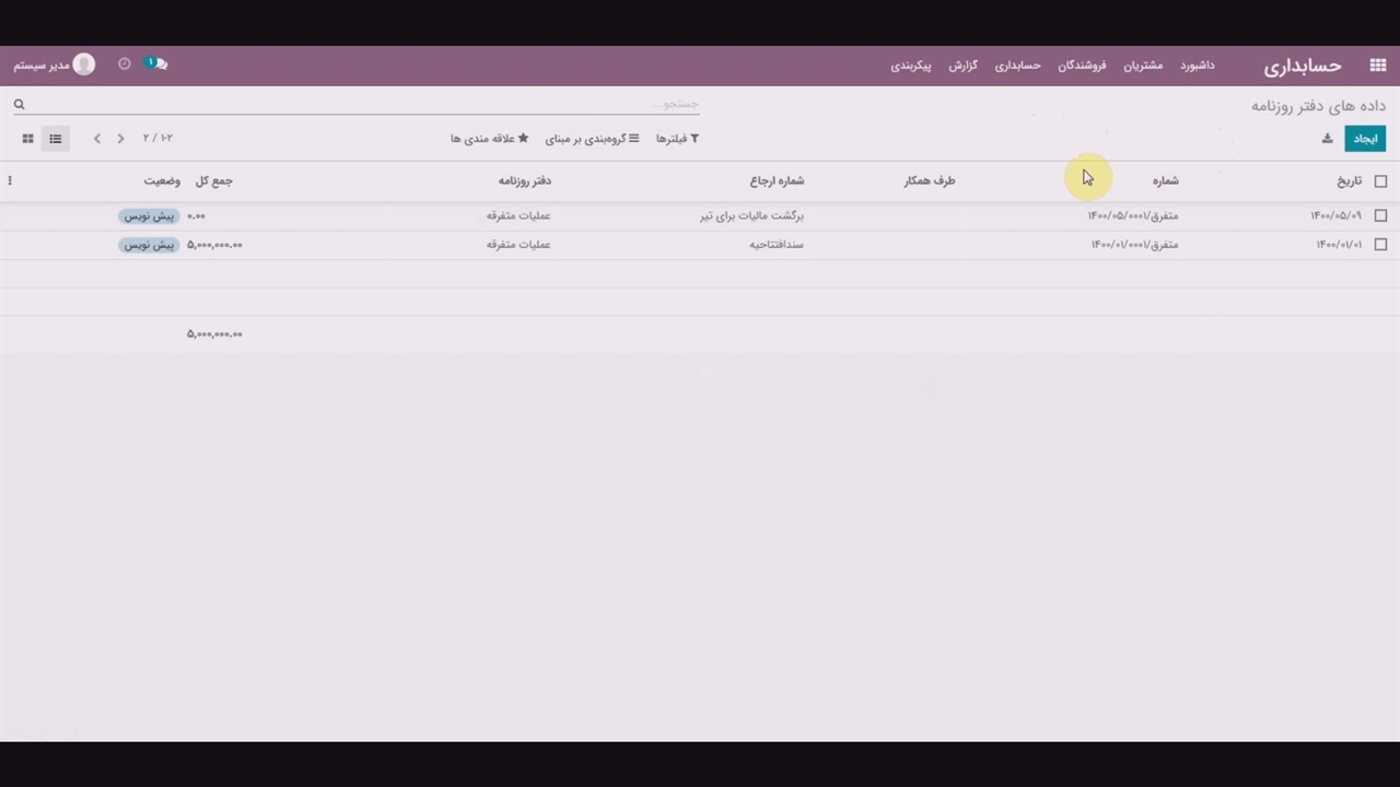 پخش صدا سند دستی حسابداری در اودوو اشتراکگذاری لیست پخش ۰ نظر ۰ نظر دانلود دانلود ویدیو دانلود کیفیت 1080p ۸.۷۸ مگابایت دانلود کیفیت 720p ۵.۹۶ مگابایت دانلود کیفیت 480p ۴.۶۶ مگابایت دانلود کیفیت 360p ۳.۷۷ مگابایت دانلود کیفیت 240p ۲.۹۰ مگابایت دانلود کیفیت 144p ۲.۴۱ مگابایت گزارش تخلف بیشتر گزینههای بیشتر لیست پخش لایکها گزارش تخلف ۰ لایک TashilGostar منتشر شده در تاریخ ۱۴۰۰/۰۵/۱۴ این کانال دنبال شد دنبال کردهاید دنبال کردن این کانال دنبال کردن ادامه آموزش نظرات لبخند لبخند لغو ثبت نظری برای نمایش وجود ندارد.
